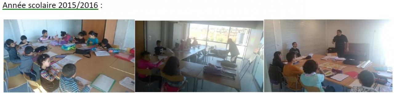 De janvier à juin, puis de septembre à décembre 2016 à la MJC d’Onet-le-Château, l'association a dispensé des cours de langue arabe à l'attention des enfants et adolescents d'Onet-le-Château, mais pas seulement. Ces enseignements sont dispensés par des bénévoles arabophones qui donnent de leur temps pour transmettre leur connaissance de cette langue. Les enfants peuvent être accueillis à partir de l'âge de 6 ans (CP) et jusqu'au lycée.