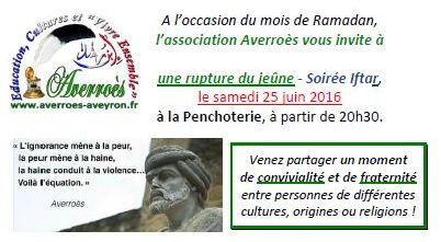 Comme à son habitude depuis quelques années, l'association Averroès proposait un Iftar le 25 juin 2016, à la Penchoterie.